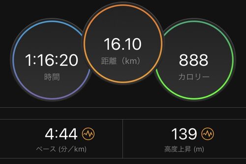 16キロジョグ、平均4分44秒ペース 昨日の駅伝大会での筋肉痛が残ってましたので、疲労抜きの意味合いでジョグを実施しました。 もう少し距離は短くするつもりが、途中興味本位で知らない道を走り、少し彷徨って距離が伸びました。笑 気分転換になりよかった…